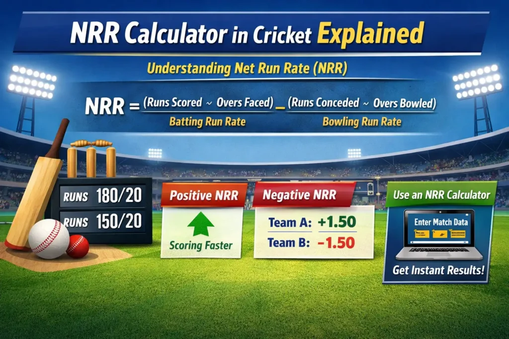 An NRR calculator is an online tool that automatically calculates Net Run Rate using match or tournament data.